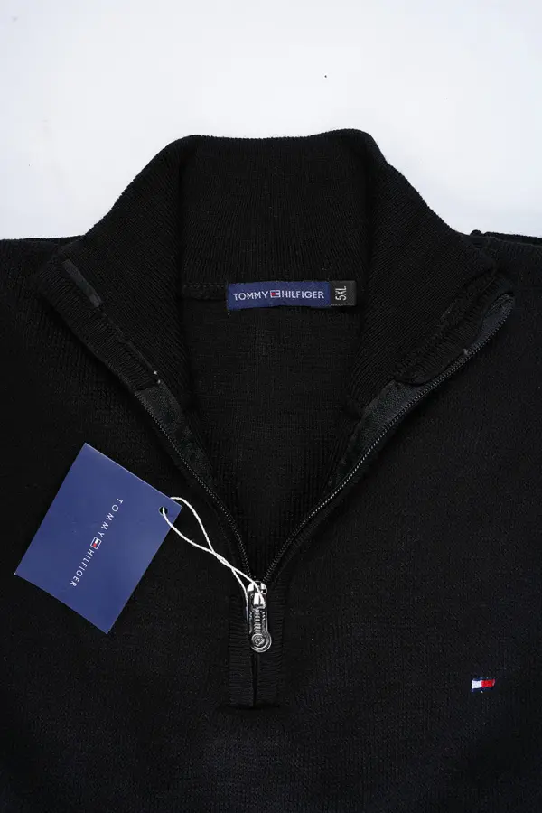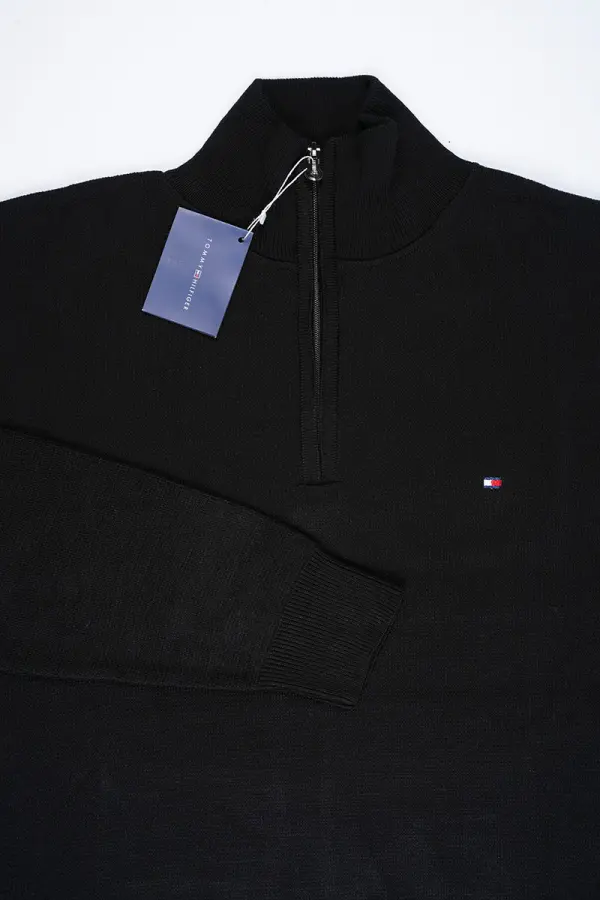 tricot Tommy Demi zip 100 % coton Ref-1G9NV1 ( Noir )